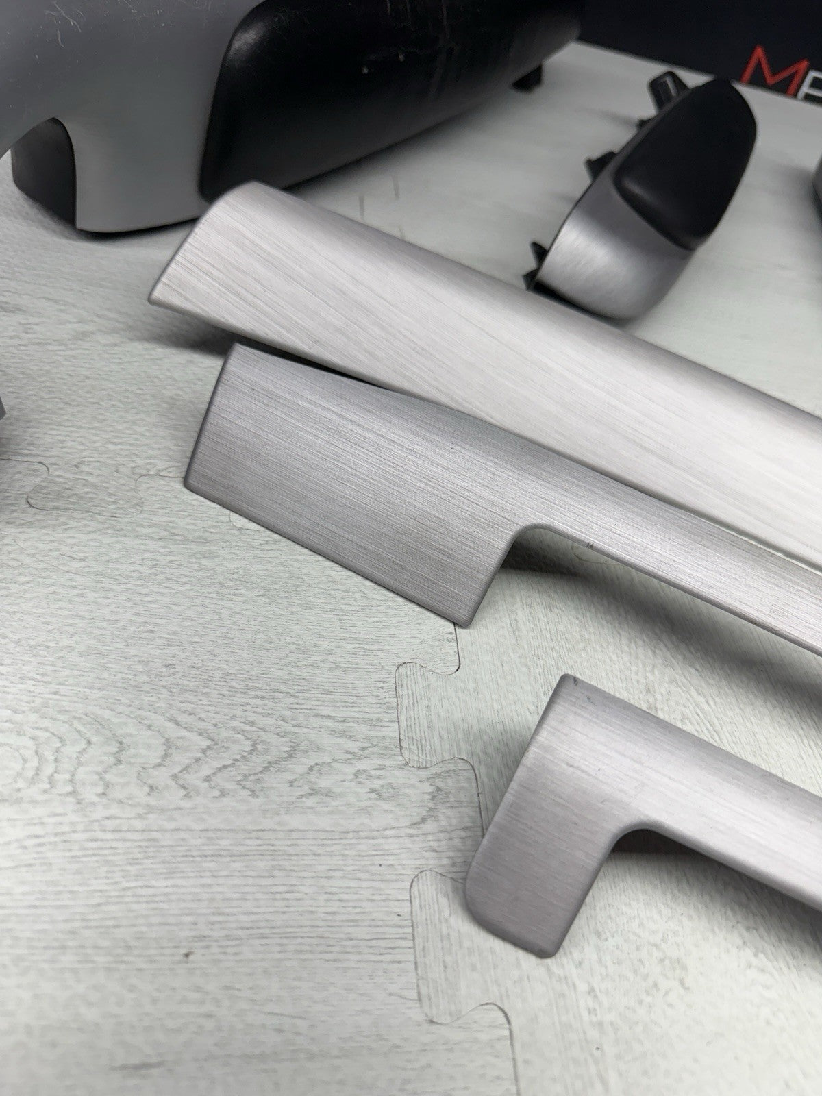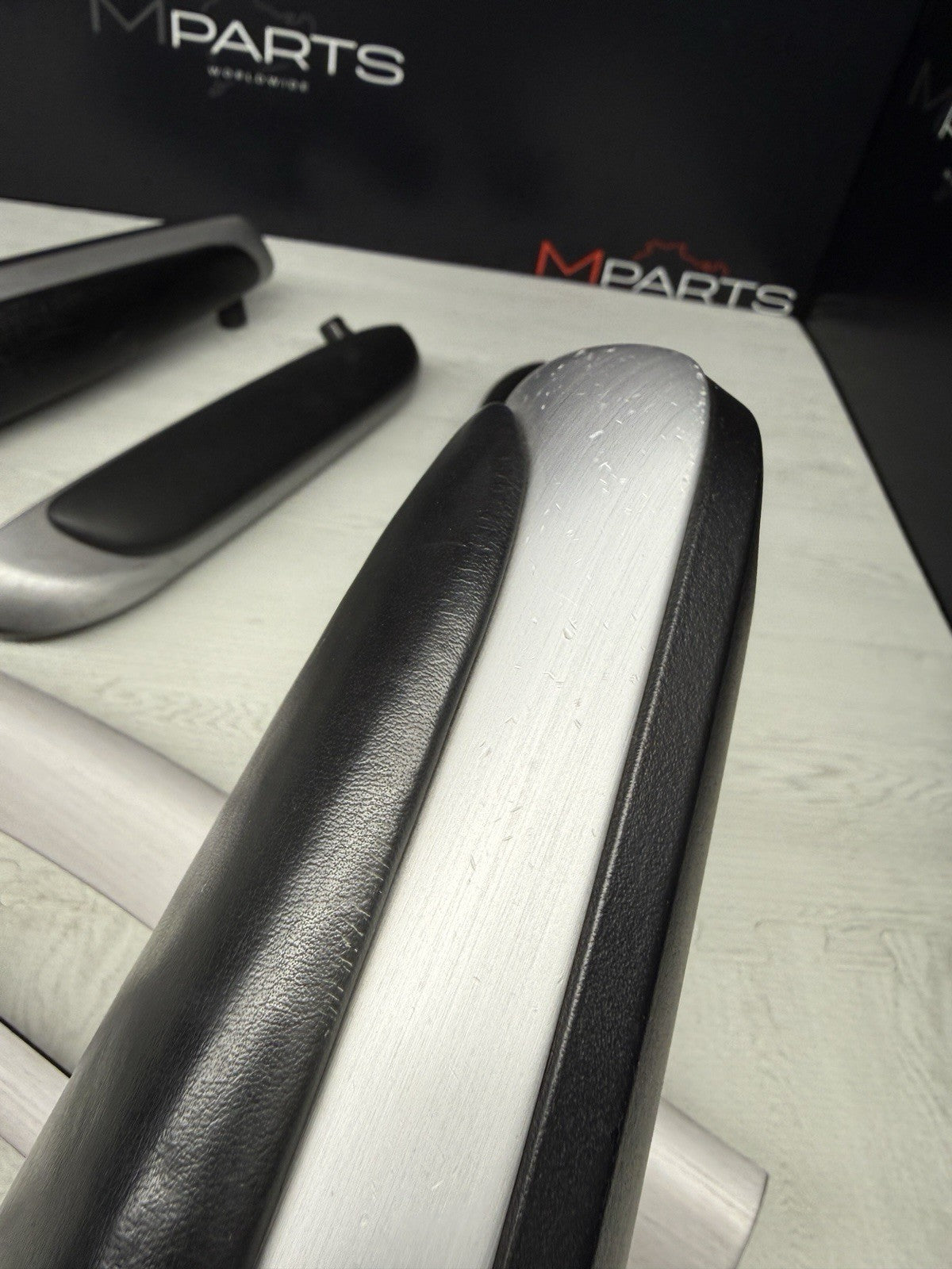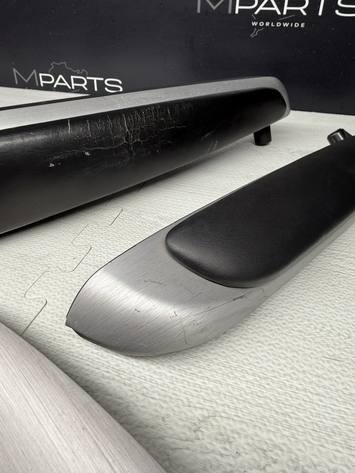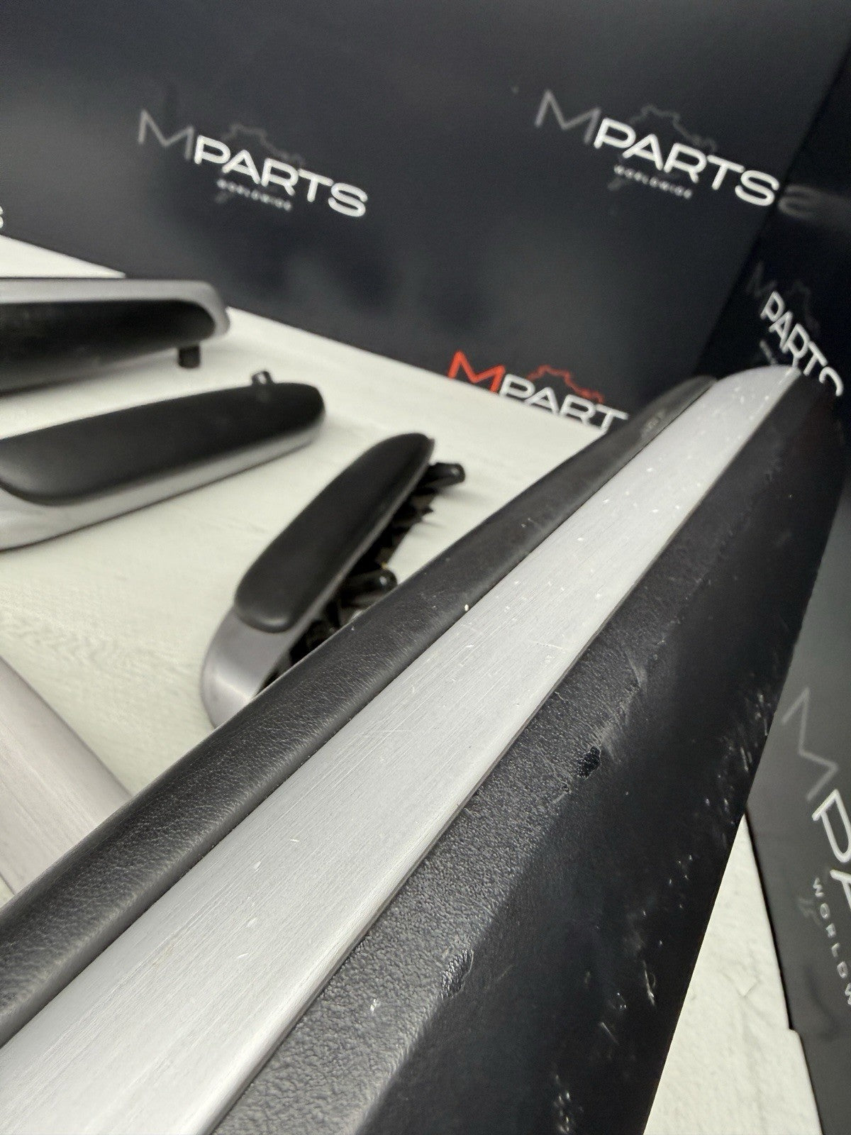 01-06 BMW E46 M3 Coupe Interior Armrests Trim Set Brushed Aluminum *Tab