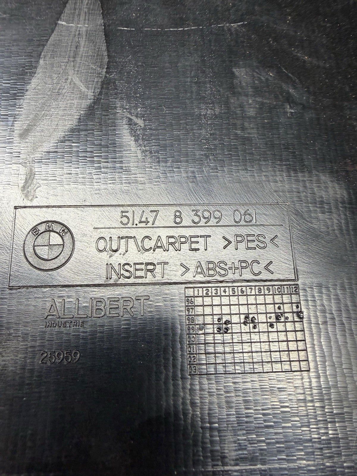 BMW 98-02 Z3 Z3 M Coupe Rear Trunk Side Carpet Panel Trim Insert 51478399061