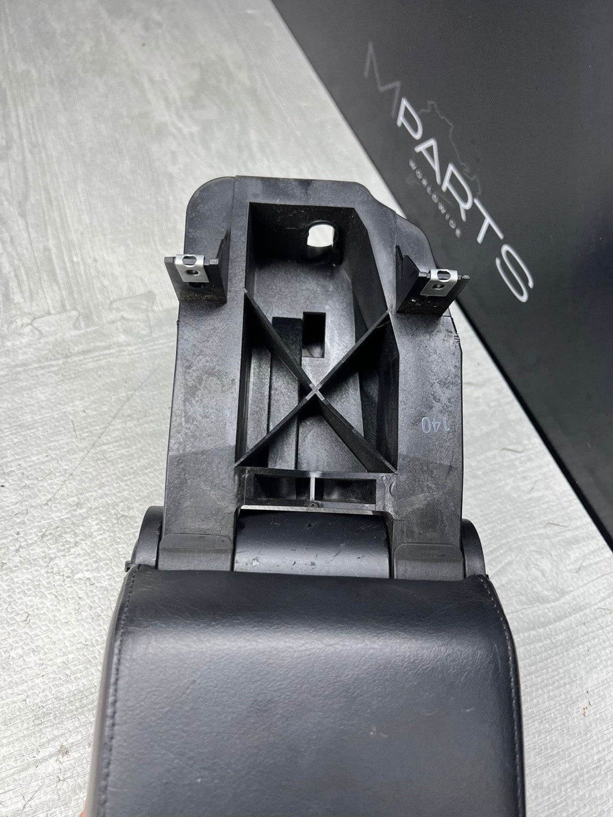 Center console arm rest black leather.