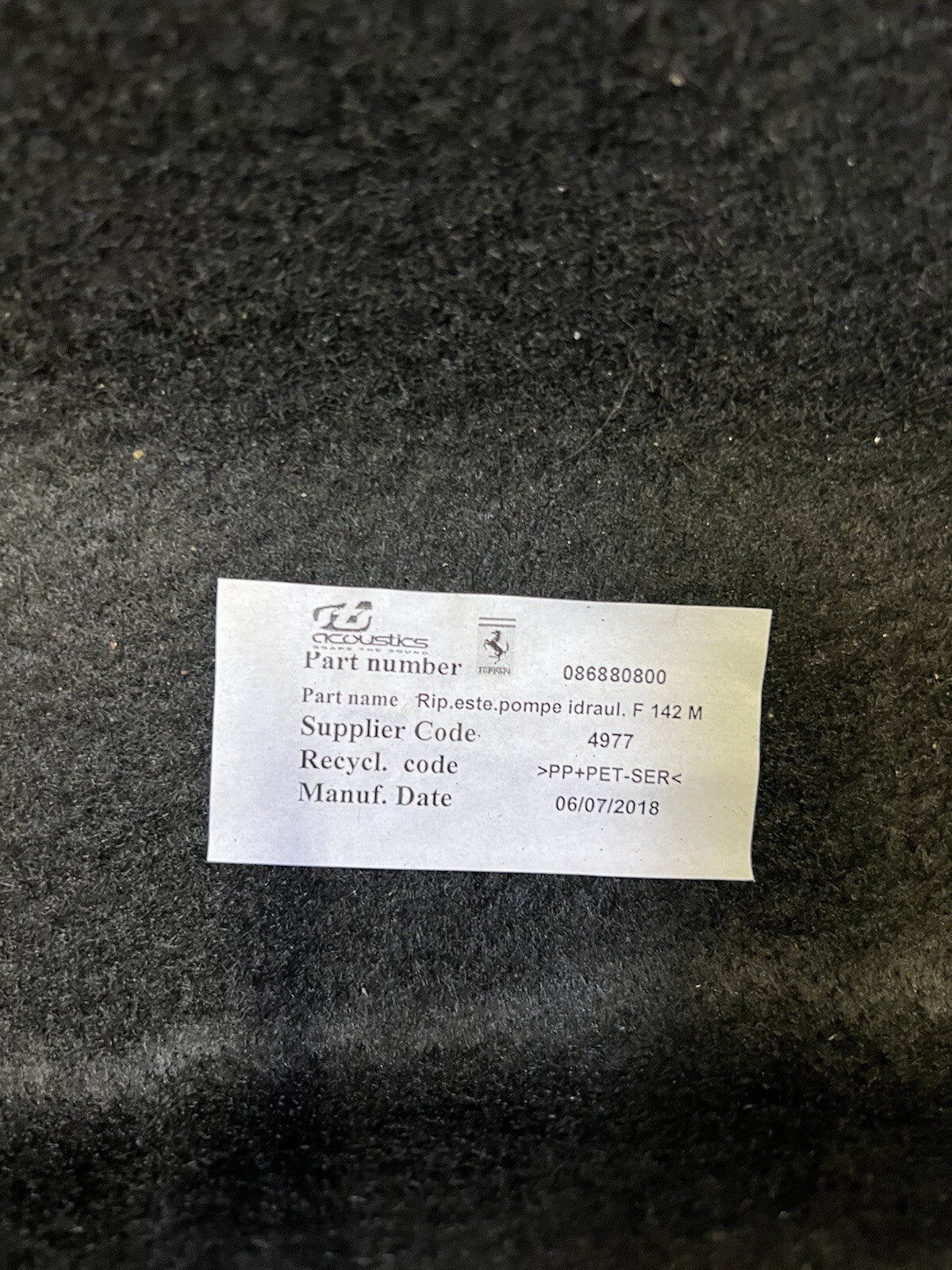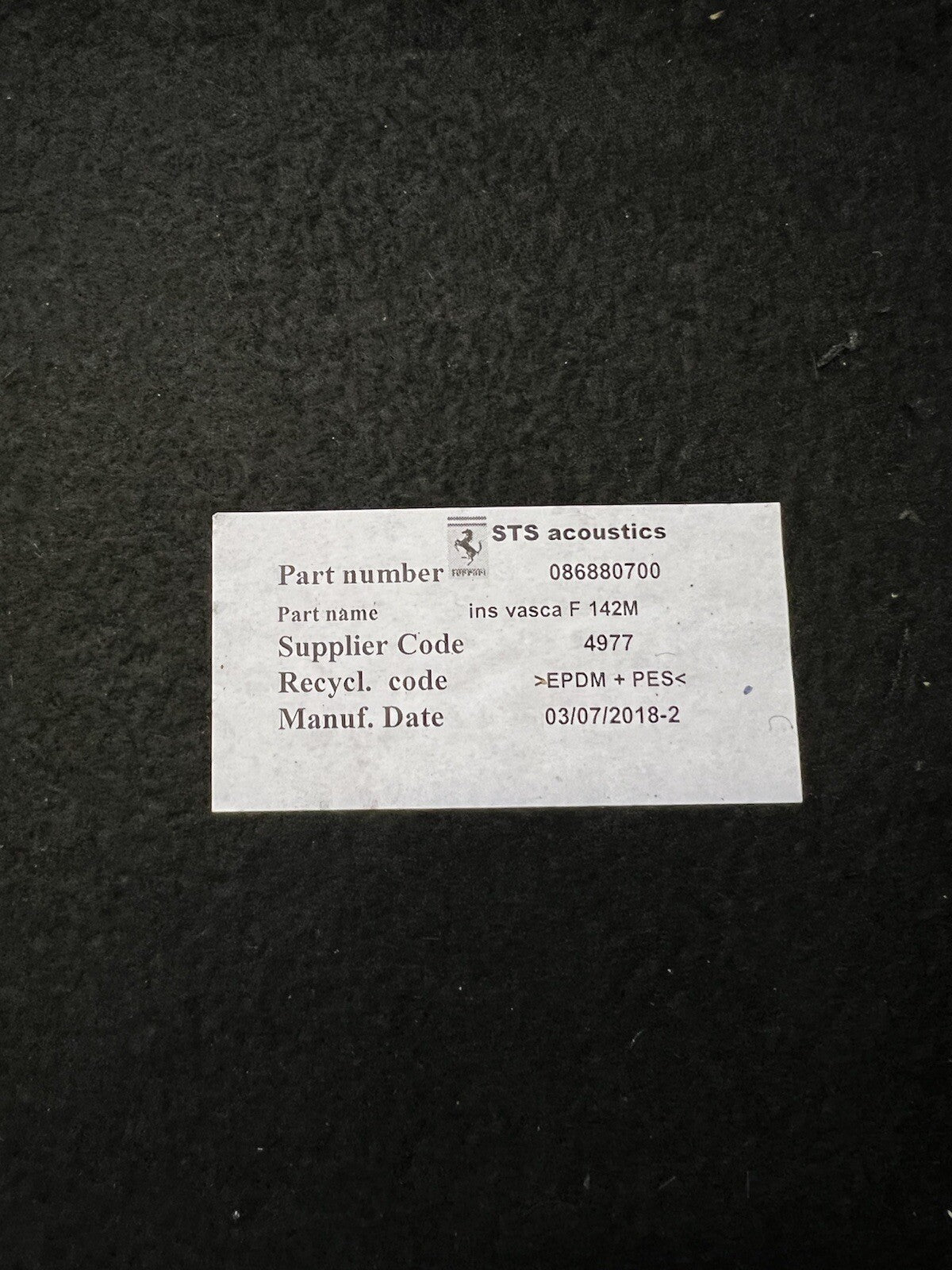 15-20 Ferrari 488 Spider Pista Front & Rear Black Floor Carpet Interior OEM