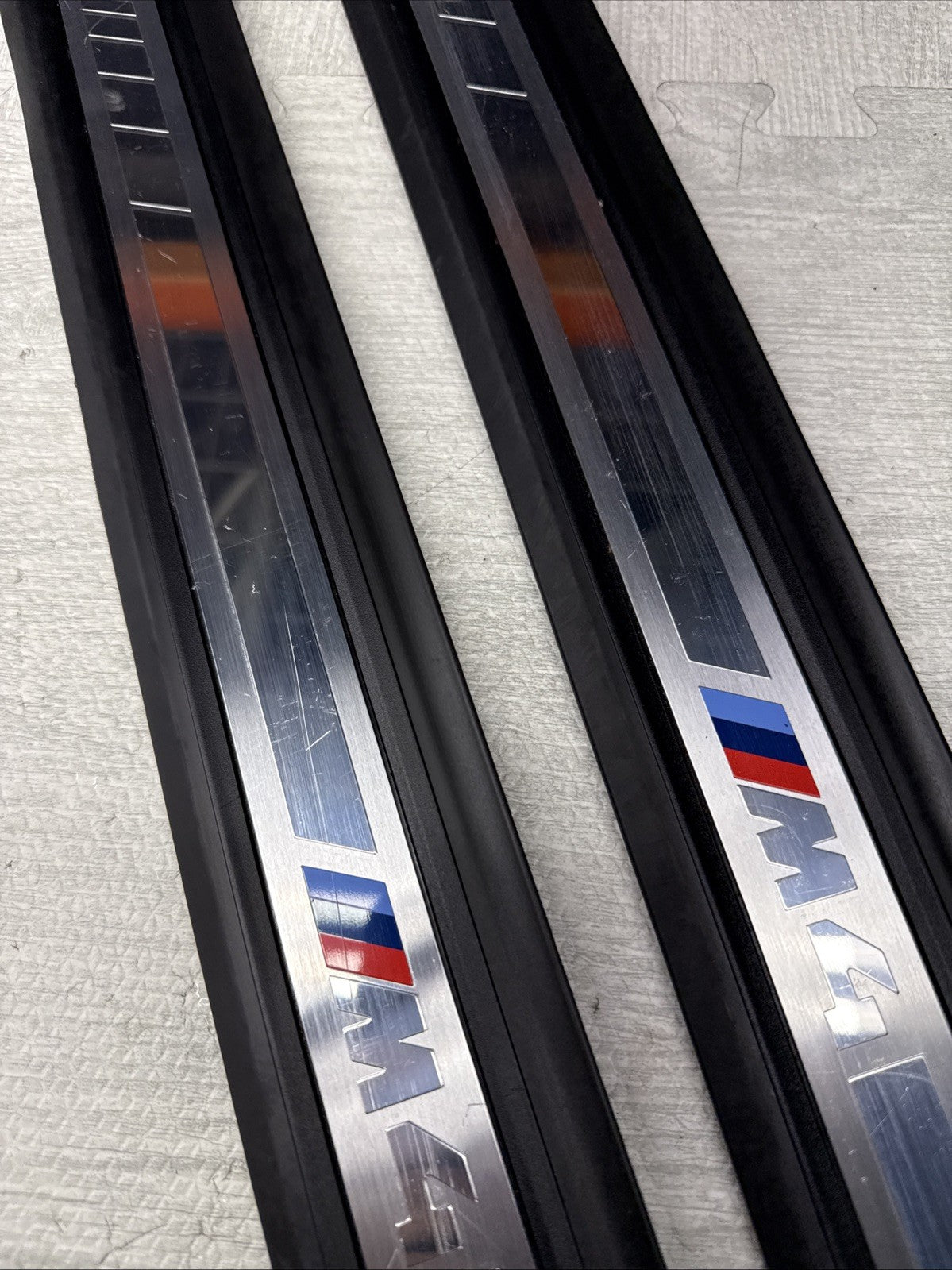 BMW 21-26 G83 M4 Front Side Door Sills Scuff Plates Trim Panels OEM. Condition is Used. Shipped with FedEx Ground / FedEx Home Delivery.Listed with ExportYourStore.com