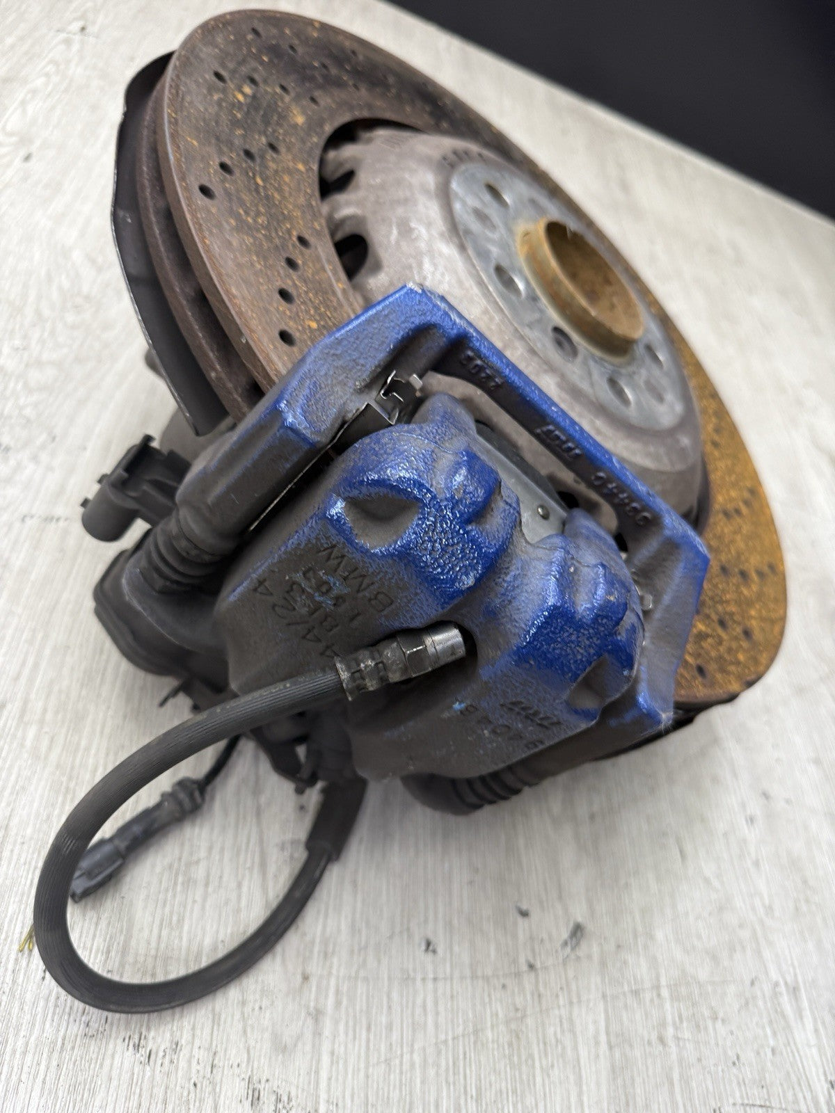 BMW 13-16 F10 M5 REAR RIGHT KNUCKLE HUB SPINDLE + ROTOR + CALIPER 34212284434