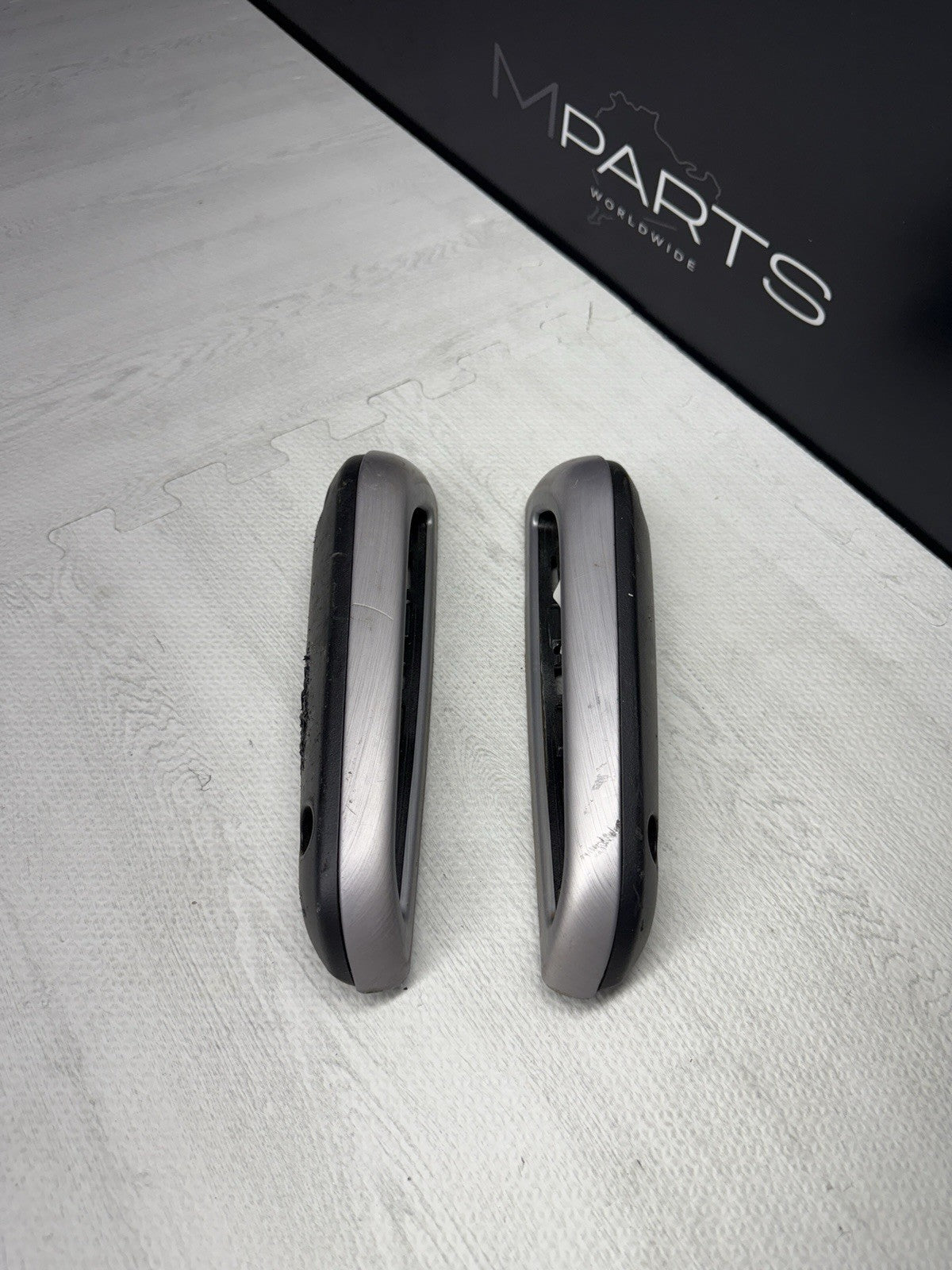 01-06 BMW OEM E46 M3 Convertible Brushed Aluminum/Black Trims Armrests Rear Pair