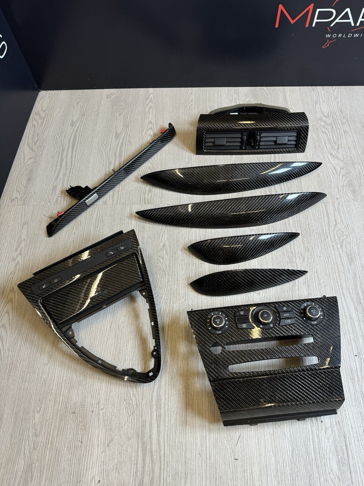 06-07 OEM BMW E63 E64 M6 Front Rear Door Dash Center Console Carbon Trim SET. Condition is Used. Shipped with FedEx Ground or FedEx Home Delivery.