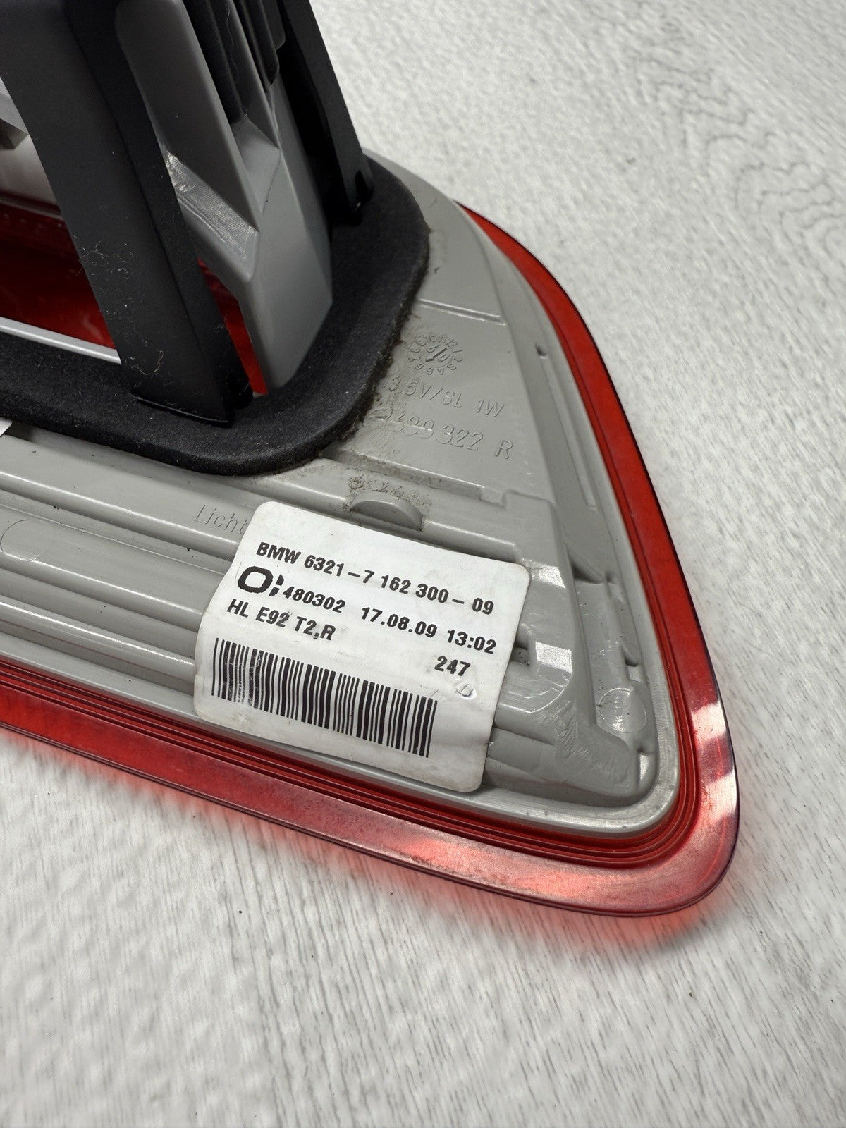 07-10 OEM BMW E92 328 335 M3 Rear Right Passenger Inner Trunk Mounted Tail Light