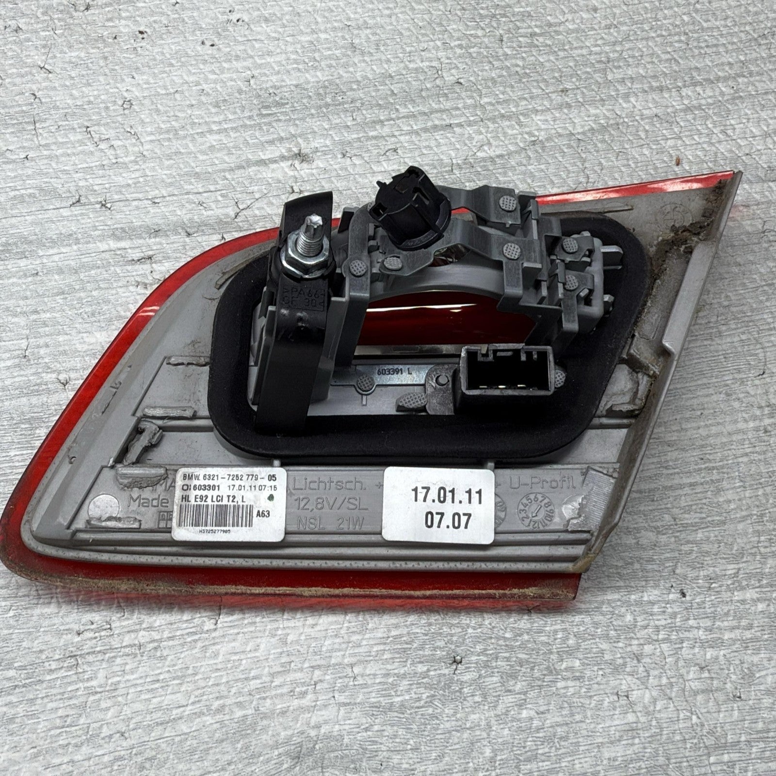 2011–2013 BMW 3 Series E92 Left Inner Trunk Lid Tail Light OEM 7252779Used, shipped via UPS ground