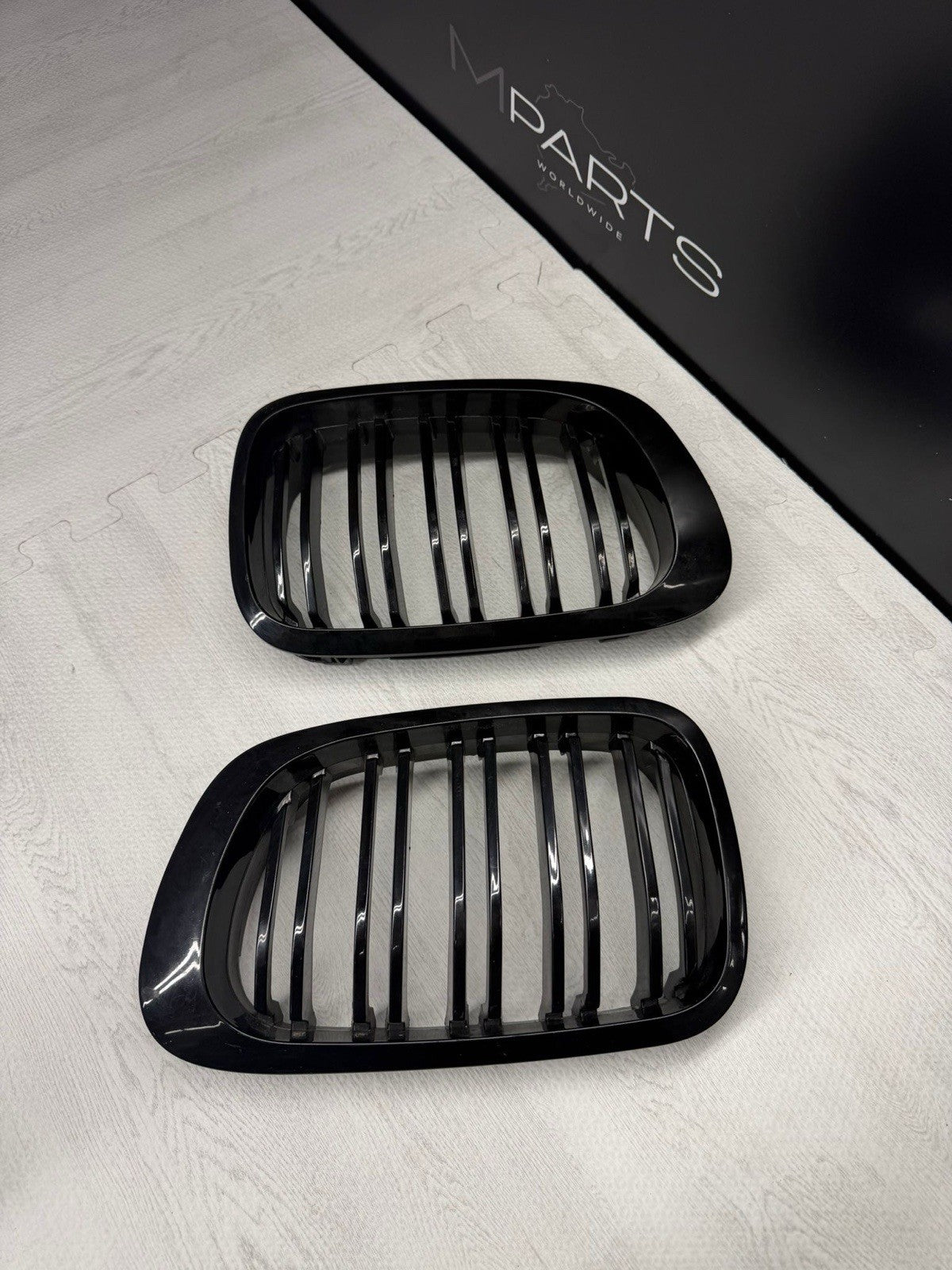 BMW 01-06 E46 M3 Front Kidney Grilles Gloss Black Set Double Slotted